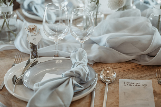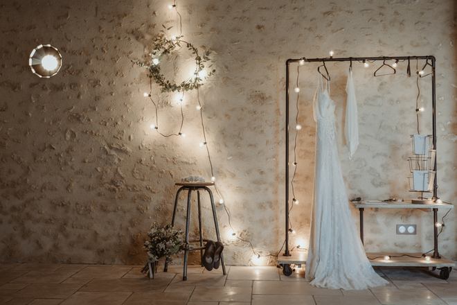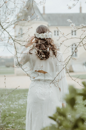 Lieu : La grange de Bresteau / Modèle : Johanna / Robe de mariée — robe : Chris Von Martial / Bijoux de tête : Dame Belette / Joaillier : Charles Letessier / Maquillage et coiffure : So Sayaline / Vidéaste : Maud Caillet / Papeterie : Septembre Papeterie / Traiteur : Perrine la toquée / Fleuriste : Maison Marguerite / Location de la décoration : Passion déco 53 / Location du mobilier : So Boya / Cadeaux d’invités : Merci Coco
