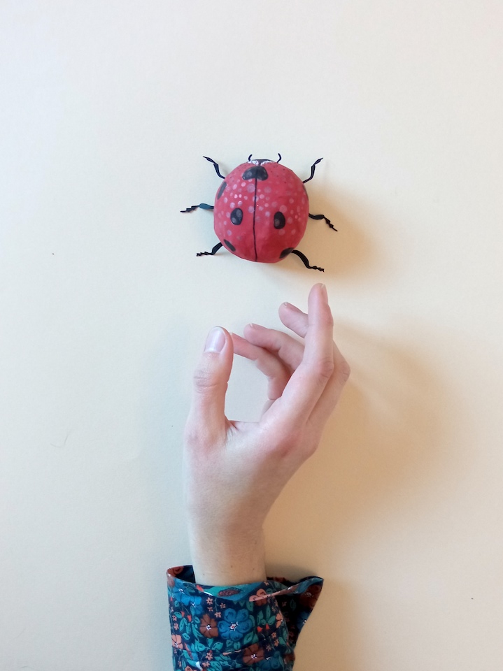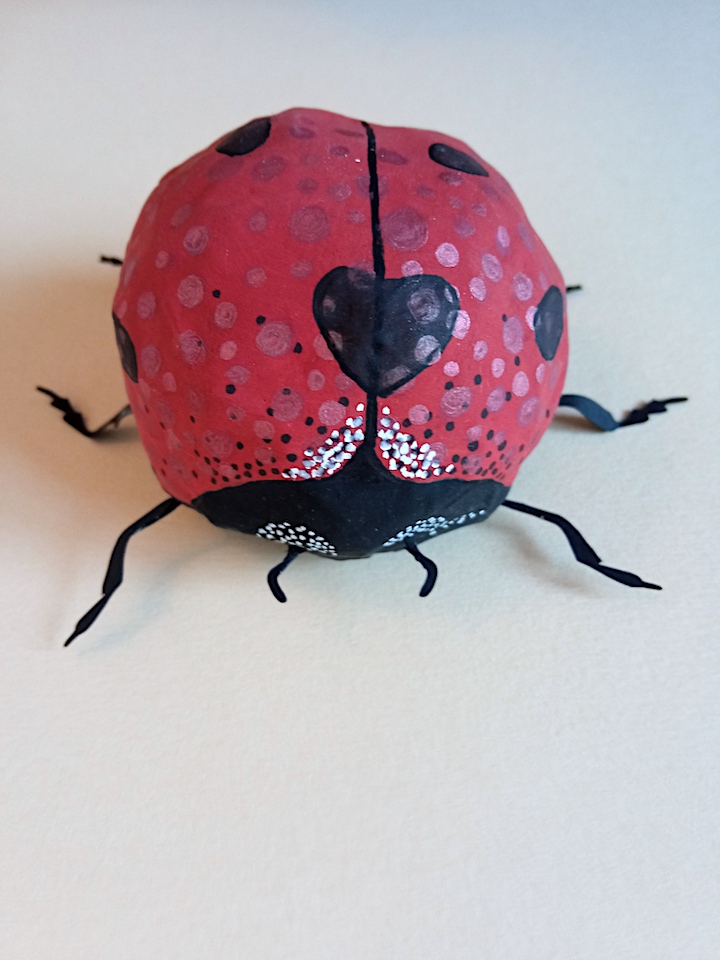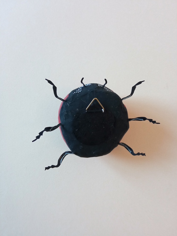 Ce coléoptère de papier mâché et découpé est façonné et peint à la main.